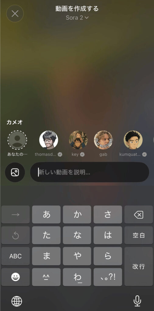アプリ版「Sora」ではCameo機能を活用でプライバシーを許可すると生成可能になります。
