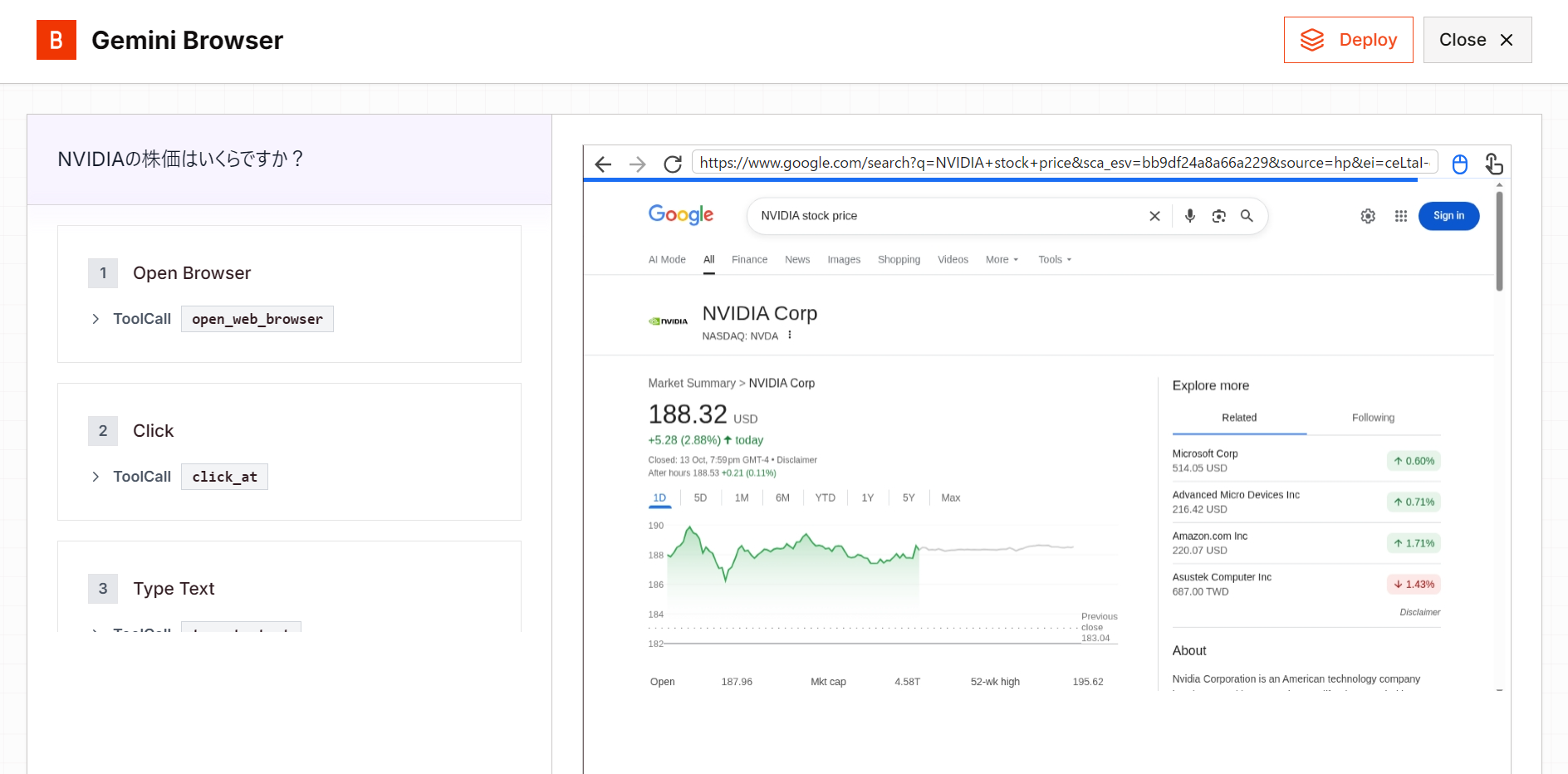 これらの特徴により、Gemini Computer Useは単に情報を「考える」だけでなく、その思考に基づいた「行動」までをAI自身で実行できる、非常に強力なツールとなっています!