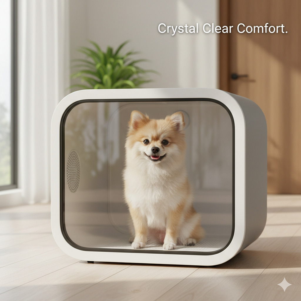 allowing an unobstructed, crystal-clear view of the dog inside.** The interior
