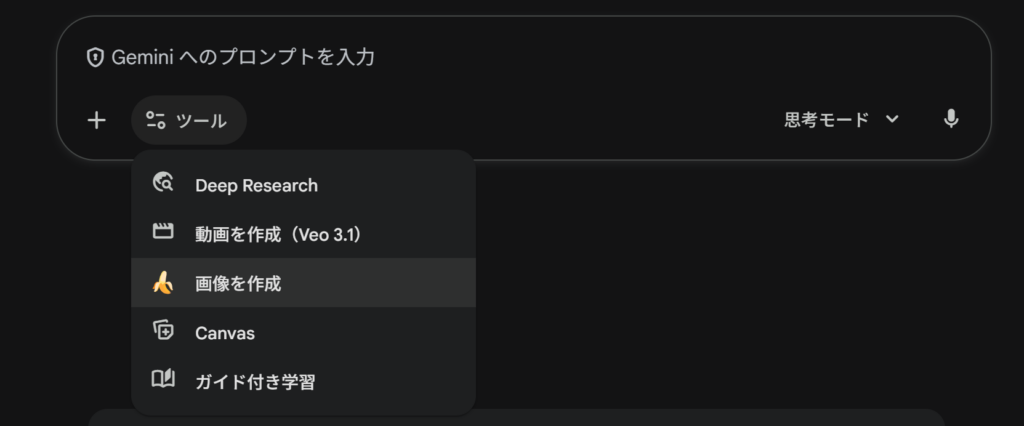 主な利用方法は「Geminiアプリ(Webブラウザ版も含む)」で、私たちが普段使っているようなチャット画面で、日本語で「こんな画像を作って」と指示(プロンプト)を送るだけで、AIが自動で画像を生成してくれます。