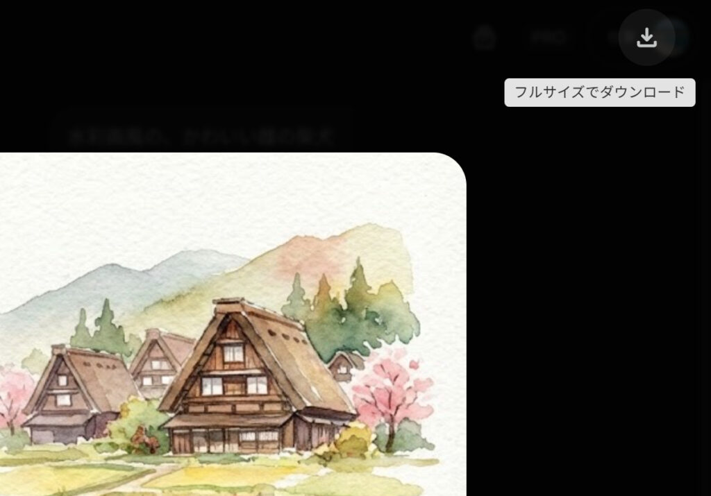 生成された画像をタップ(クリック)し、ダウンロードボタンを押すと、お使いのPCの「ダウンロード」フォルダまたはスマートフォンの写真フォルダに保存されます。