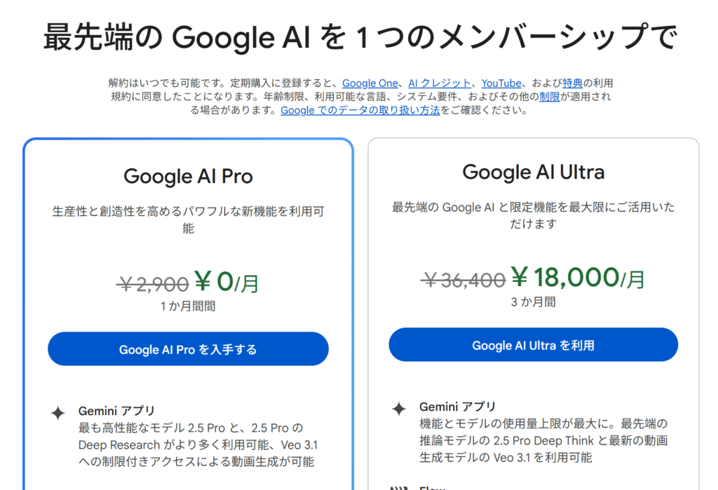 - 動画生成(Veo、Whisk、Flowなど)といった、最先端かつ今後実装される予定の最上位機能を誰よりも早く試したい方。