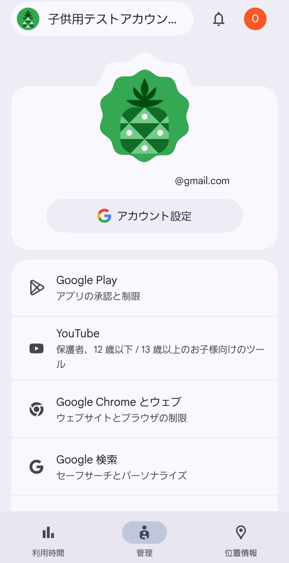 ↓するとFamily Linkのホーム画面が表示されます。