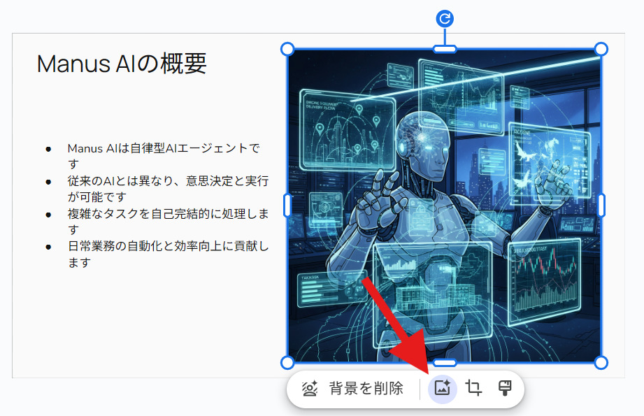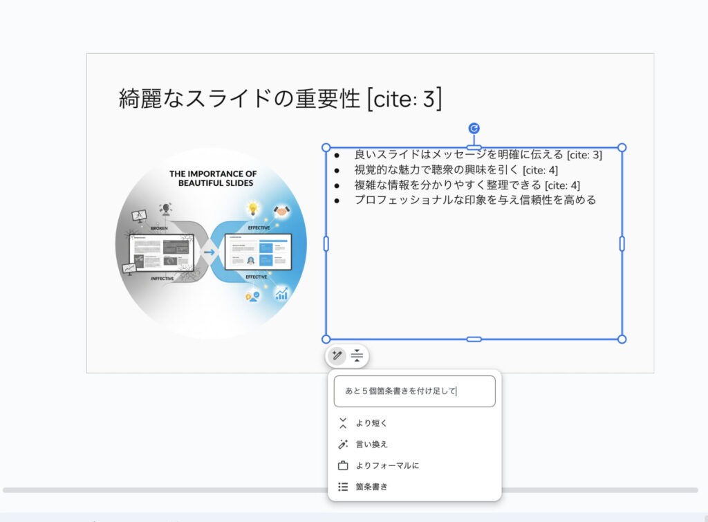 • Gemini in Googleスライドでは自分で直感的に修正が可能