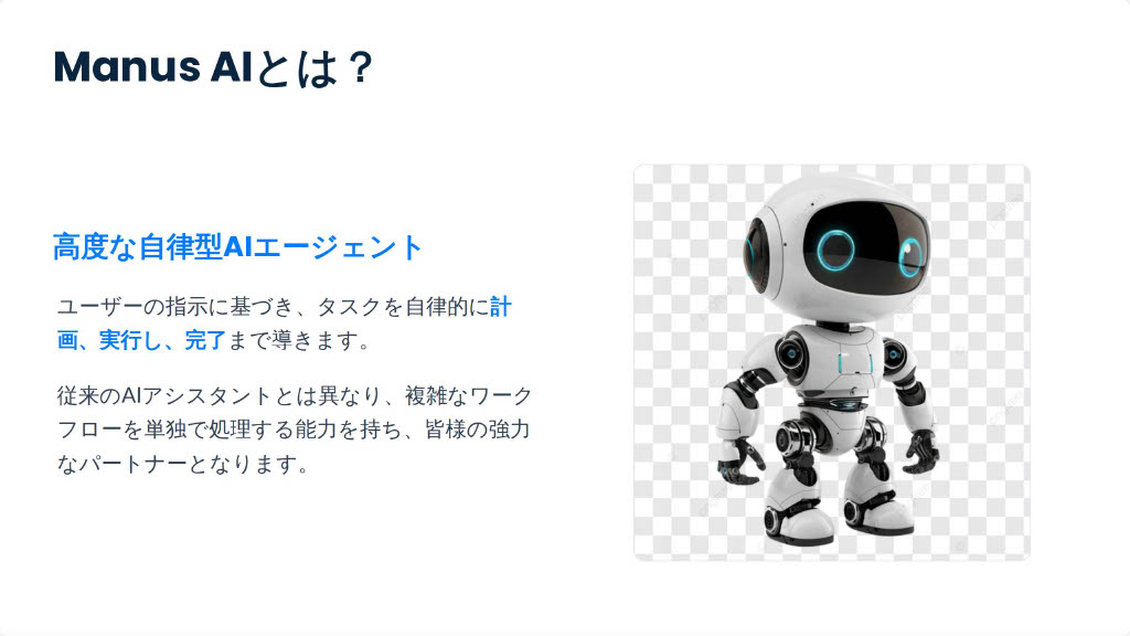 Manus AIとは何か? AIエージェントとしてのManus AIの概要と、従来のAIとの違いを解説します。
