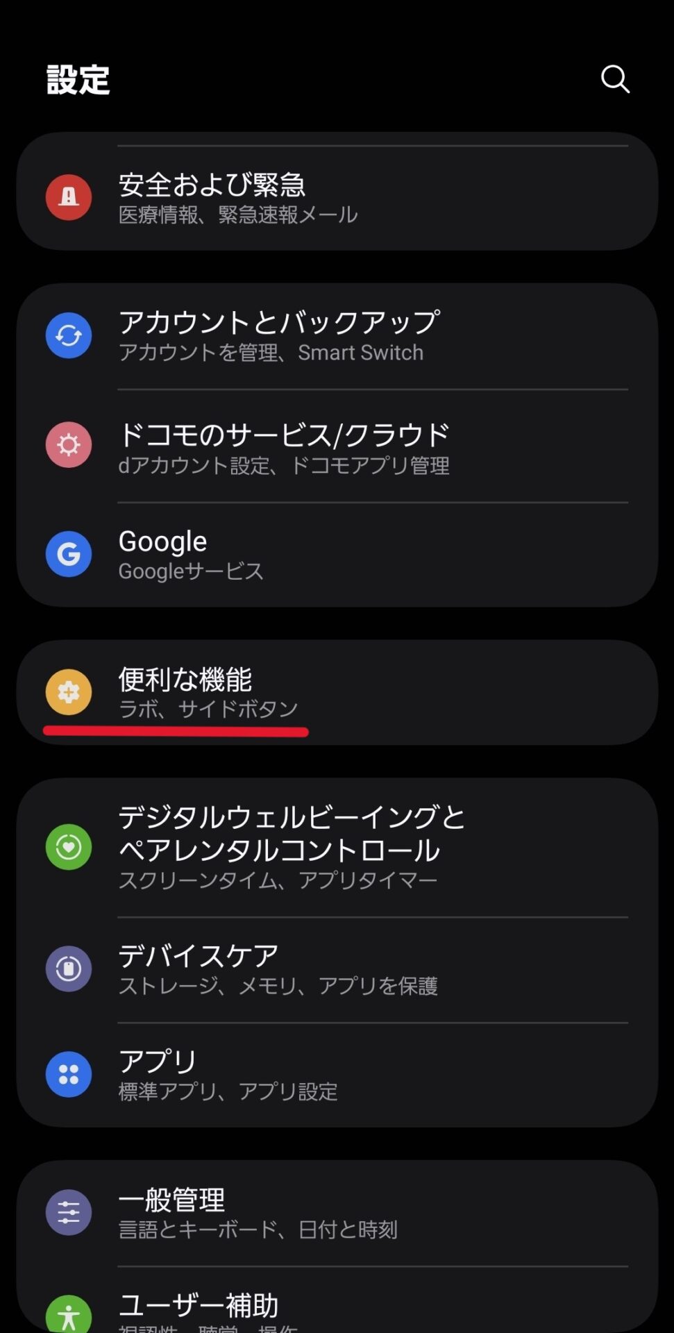 - ステップ2設定メニュー内の「システム」、「高度な機能」、あるいは「便利な機能」といった項目を探してタップします。
