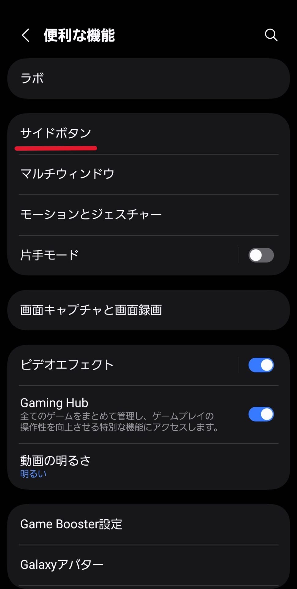 - ステップ3その中に「ジェスチャー」や「サイドボタン」、「電源ボタン」といった、ボタン操作に関する設定項目を見つけてタップします。