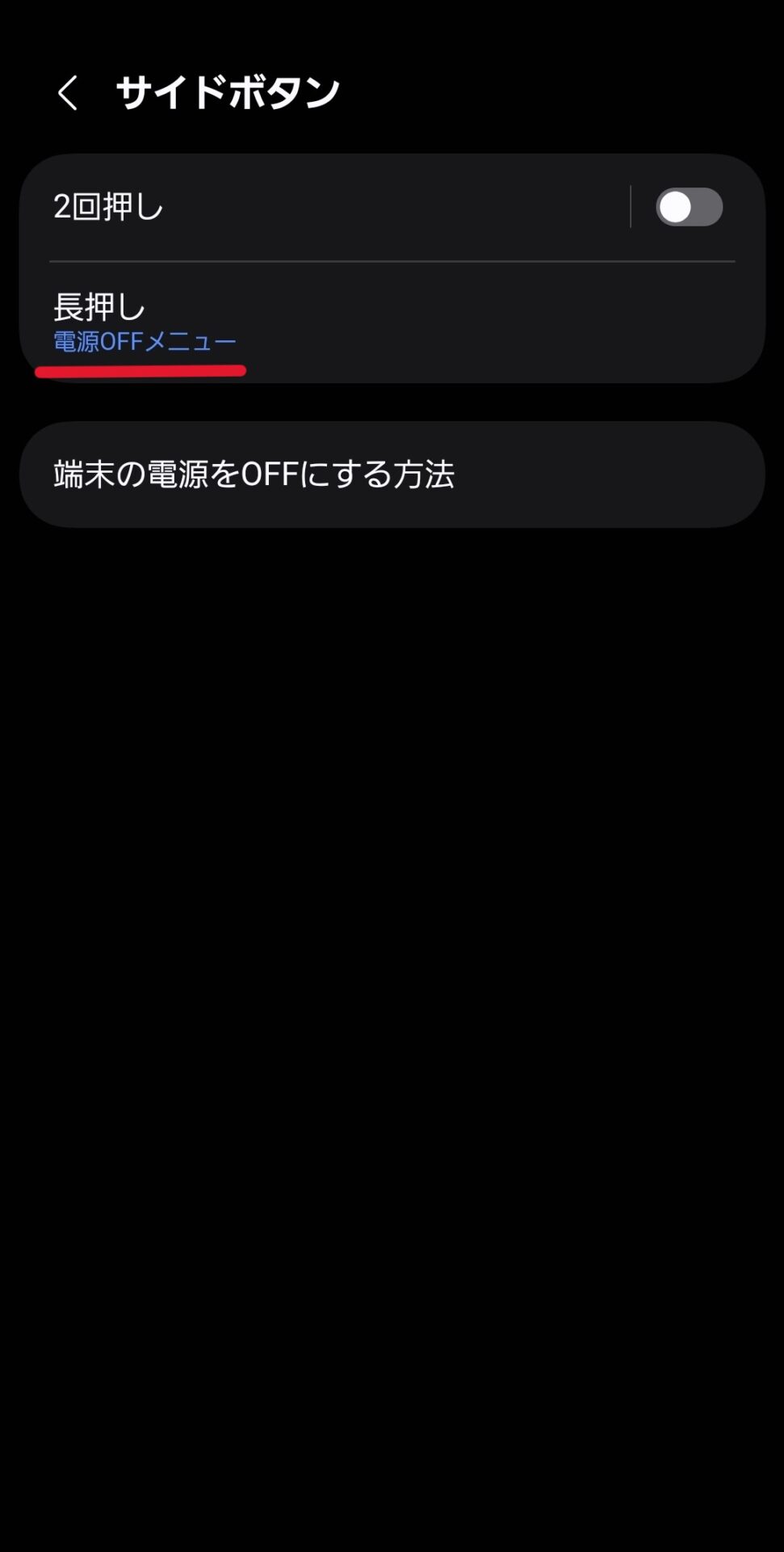 | Samsung Galaxy | 設定 → 詳細設定 → サイドボタン→長押し |