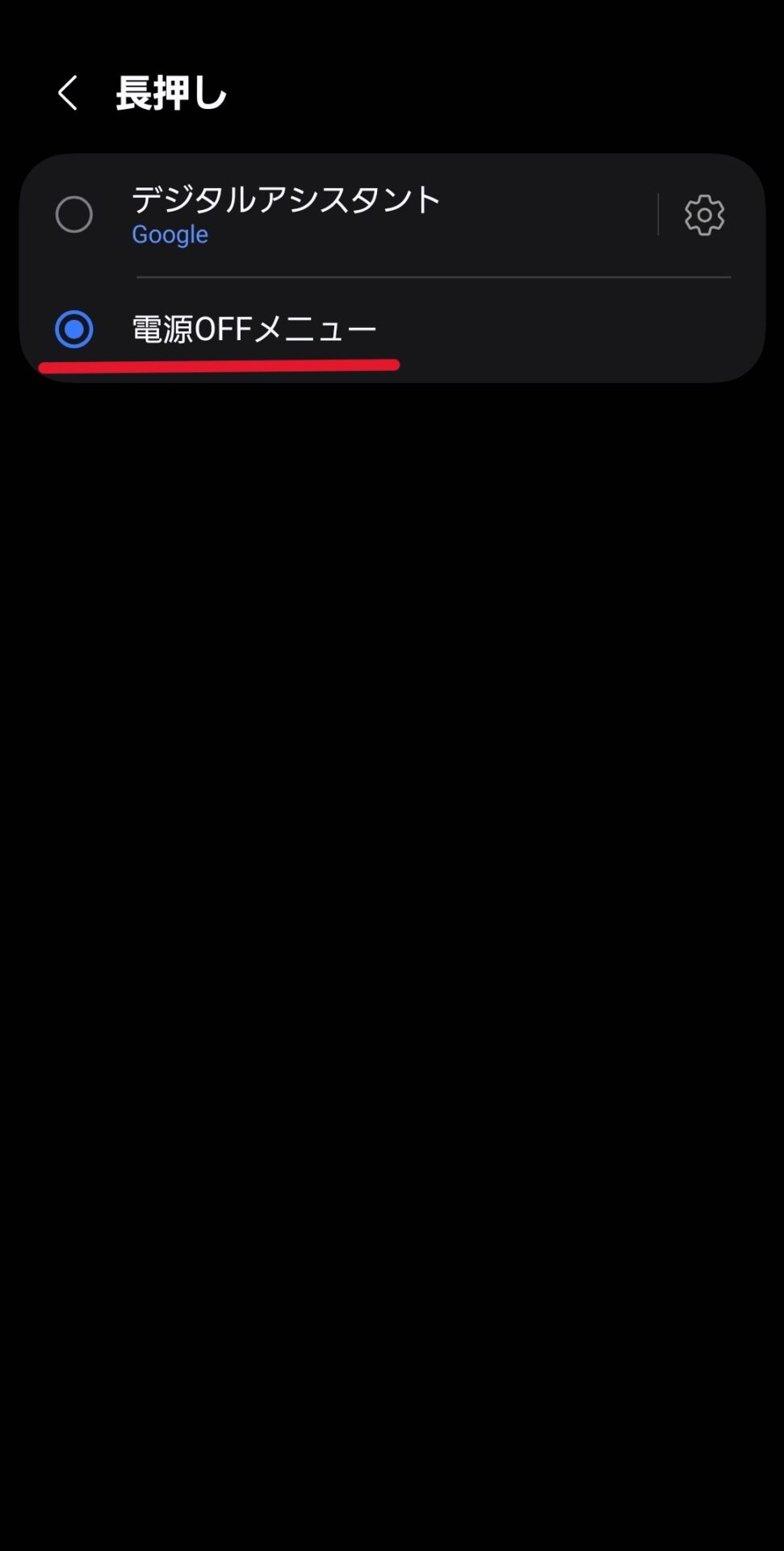 - ステップ5設定が「デジタルアシスタント」または「Gemini(Googleアシスタント)の起動」になっているはずです。これを「電源メニュー」に切り替えます。