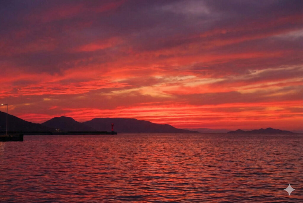 このように、指示通りの夕焼け色に調整してくれます!さらに、空だけでなく海に反射する色もしっかりと調整してくれました。