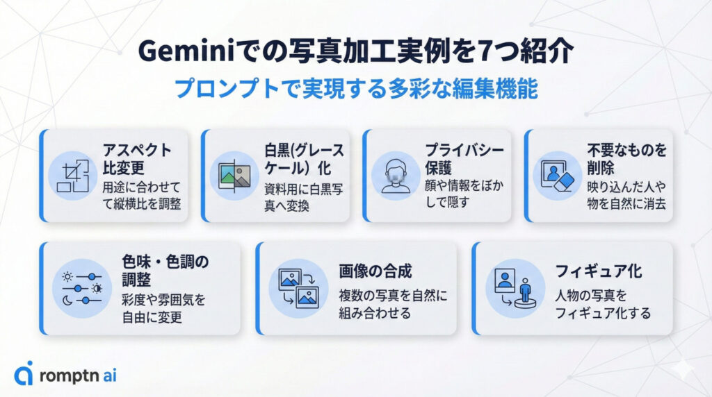- Geminiでは実際にどのような種類の画像加工ができるのか