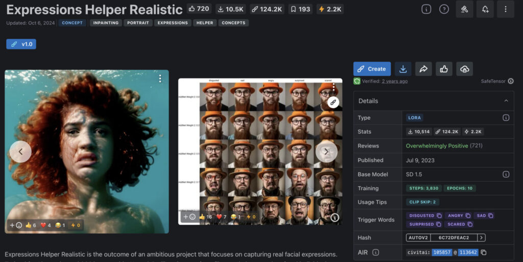 特によりリアルな「泣き顔」や「怒りの表情」など、通常のモデルでは出しにくい感情表現を自然に生成できるのが大きな特徴。