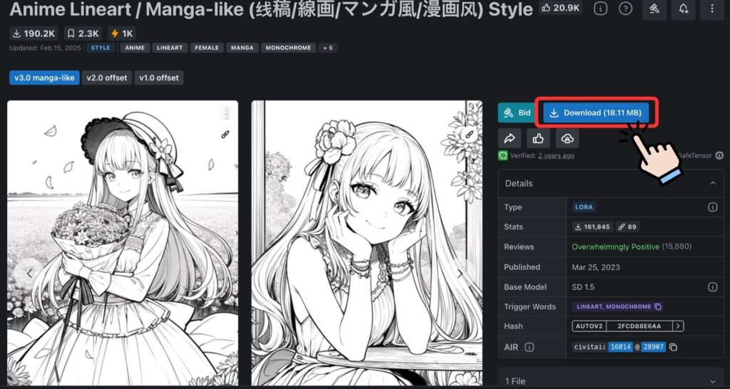⚫︎CivitAIでのLoRAのダウンロード方法