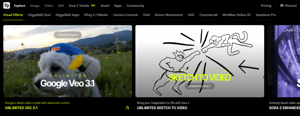 ③プロ映像制作を目指す方におすすめなのは、Higgsfieldです!