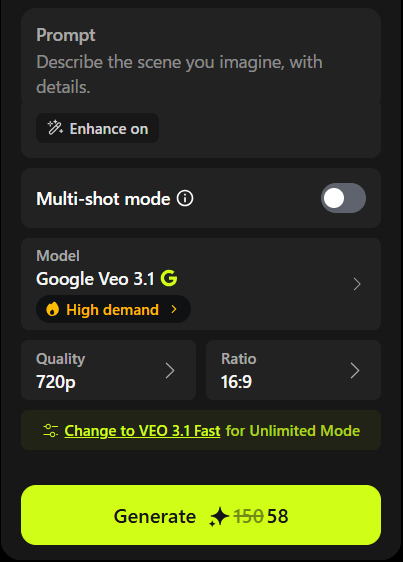 放送品質や映画クオリティを目指すなら、Higgsfieldの専門機能が必要になります。