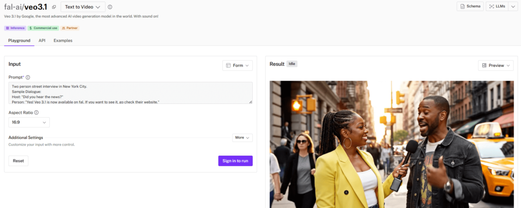 APIを使いたいけど、コードは書きたくないという方におすすめなのがGoogle AI Studioです。APIキーを入力することで、ブラウザ上からVeo 3.1を利用できます。