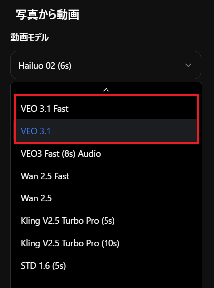 - ステップ3品質設定で「Veo 3.1 Fast」を選択