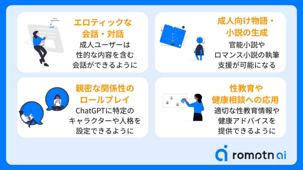 では、具体的にChatGPTでどのような成人向けコンテンツが利用できるようになるのか、詳しく見ていきましょう!