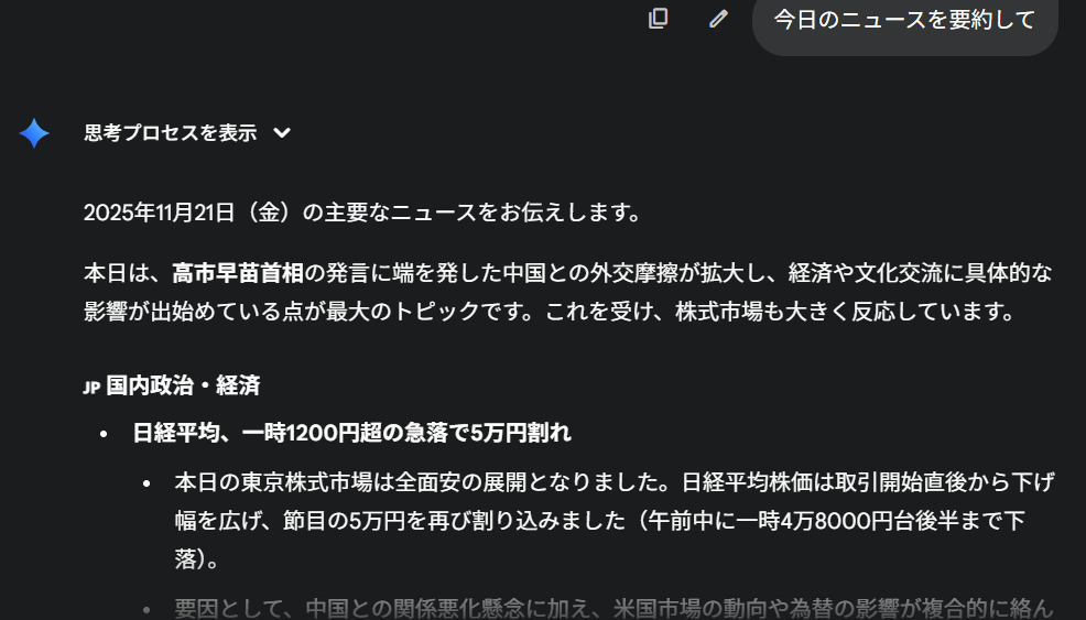 - 「今日のニュースを要約して」