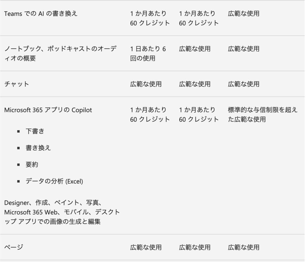 有料プラン、特に最上位のプランである「Microsoft 365 Premium」や「Microsoft 365 Copilot」では実質的に無制限で利用できるケースが多いです。