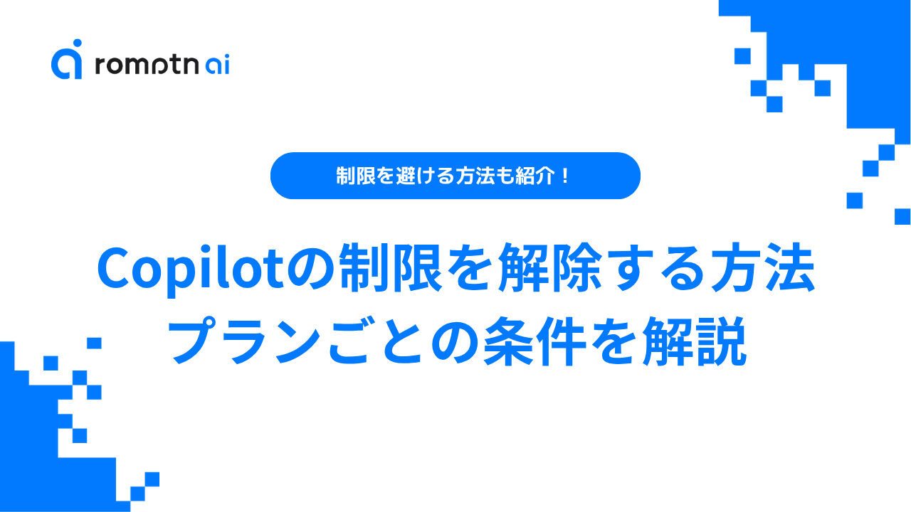 そこでこの記事では、Copilotの制限はどうしたら解除できるのか、そもそもCopilotの制限はどんな条件となっているのかを解説します。