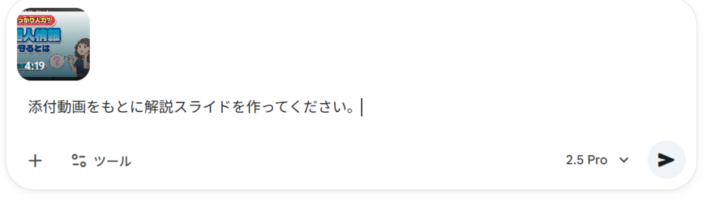 まじん式v4のGemにてプロンプト入力の際に動画ファイルもアップロードします。