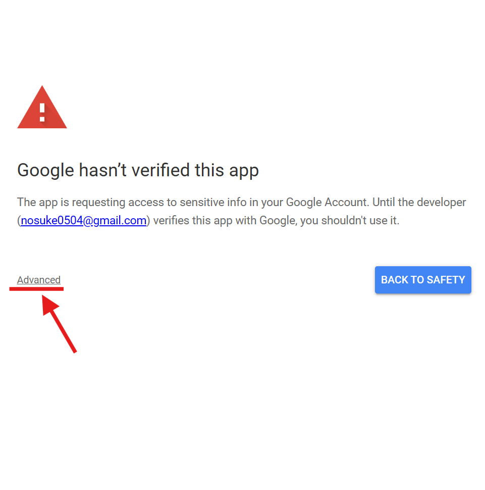 デプロイすると以下のような画面が出てきますが、左下の「Advanced」を押します。
