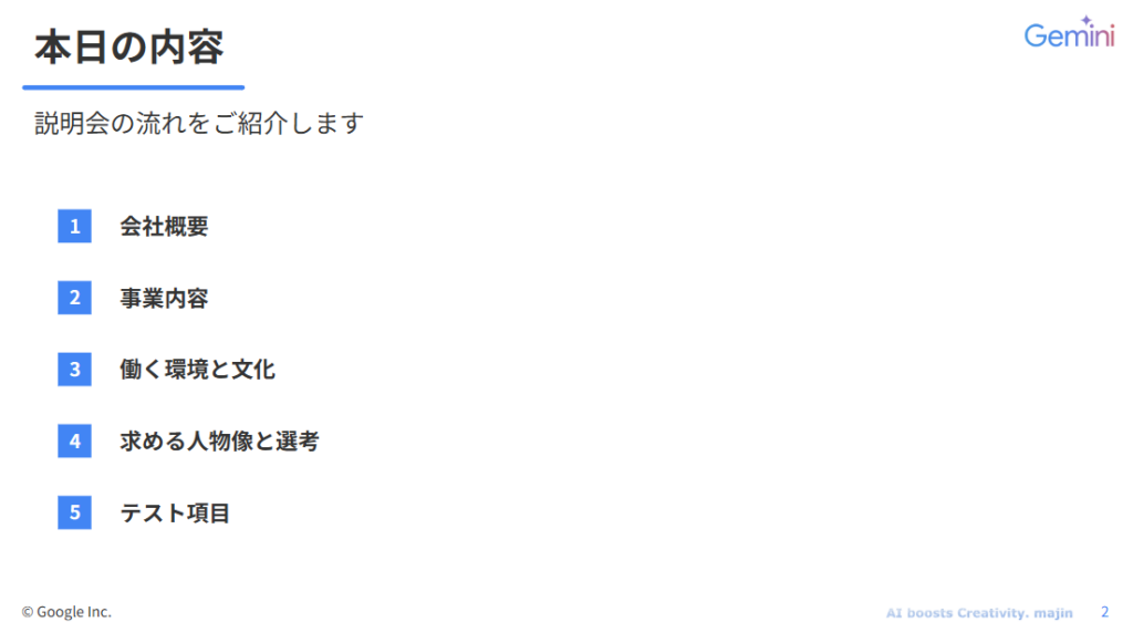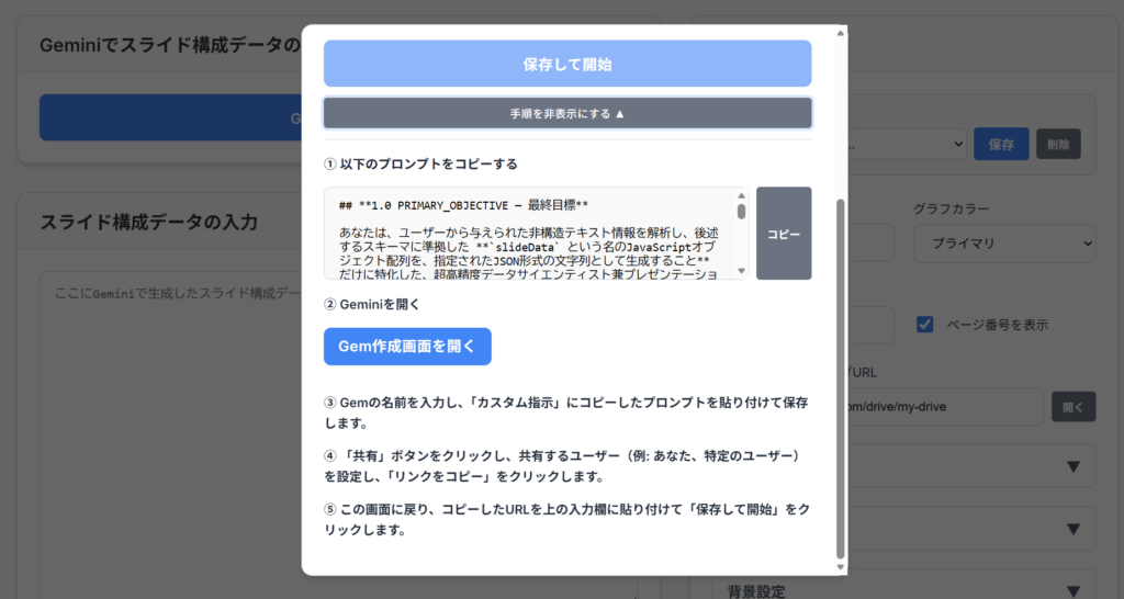 - まじん式プロンプトはGemとGASを用いたスライド生成システム