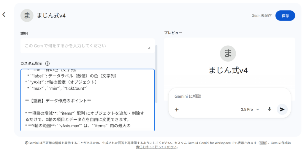 まず、表示されているプロンプトをコピーし、そのプロンプトを用いてGemを作成します。