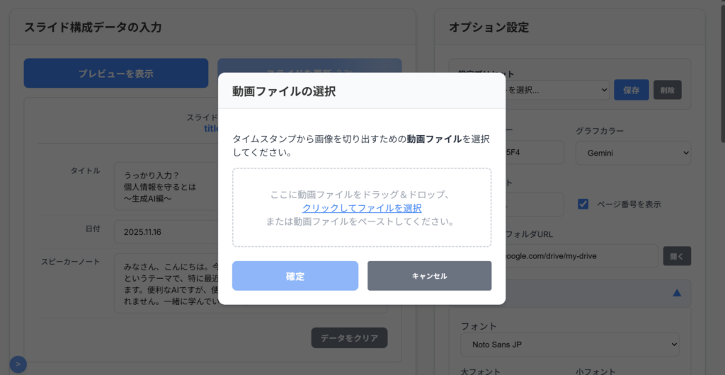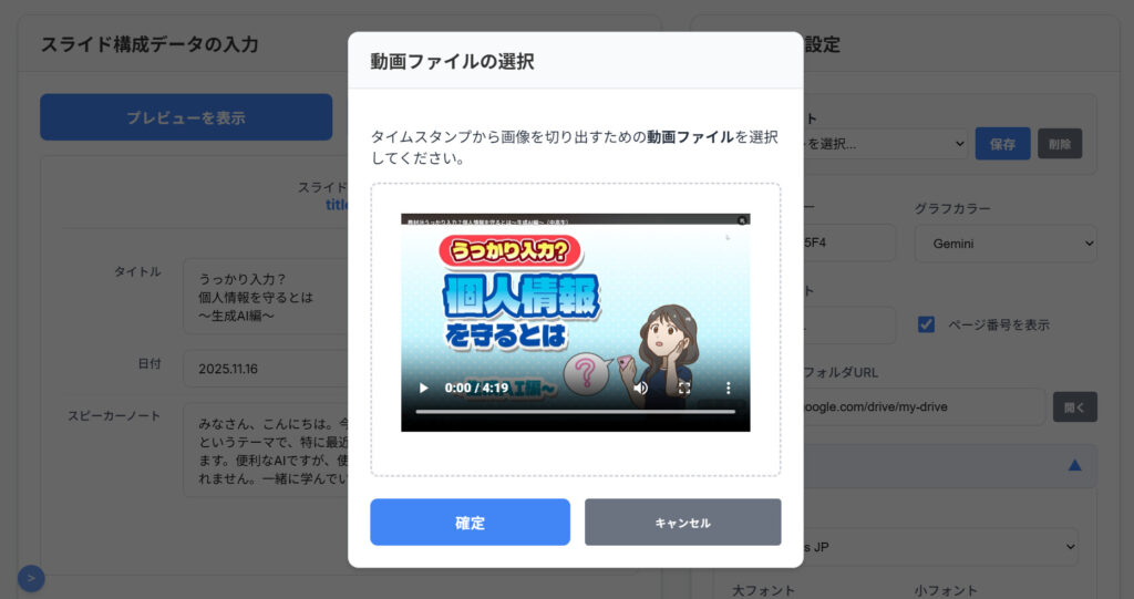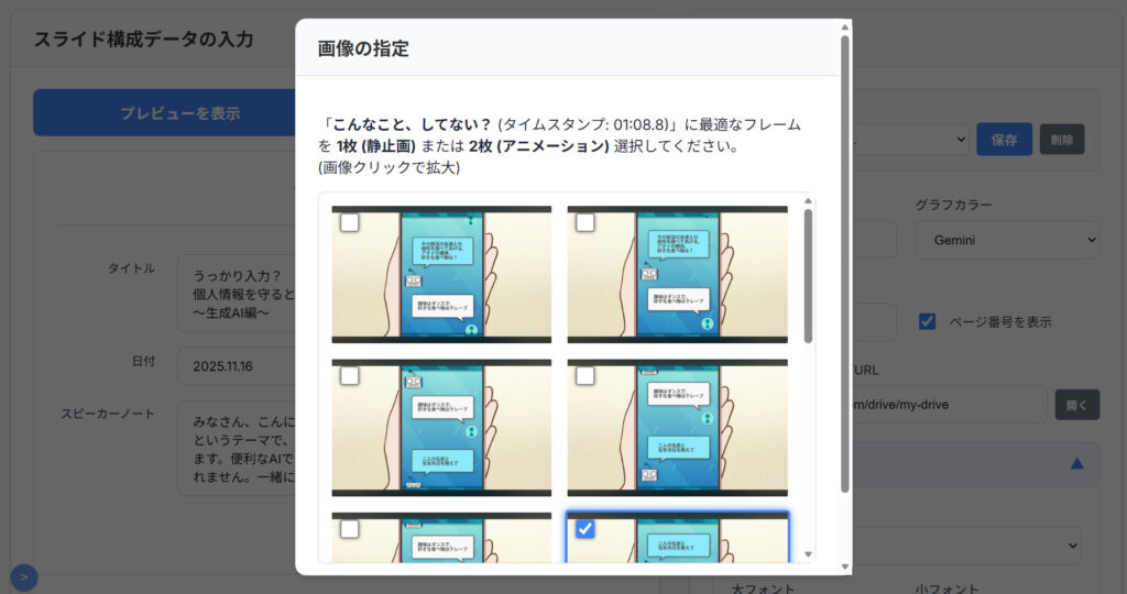 v4ではさらに進化し、Geminiに添付した動画のキャプチャ画像(フレーム)を、スライド内に自動で挿入できる機能が搭載されました。