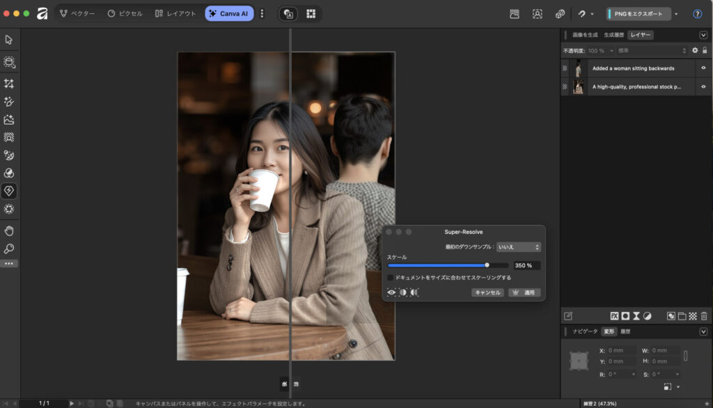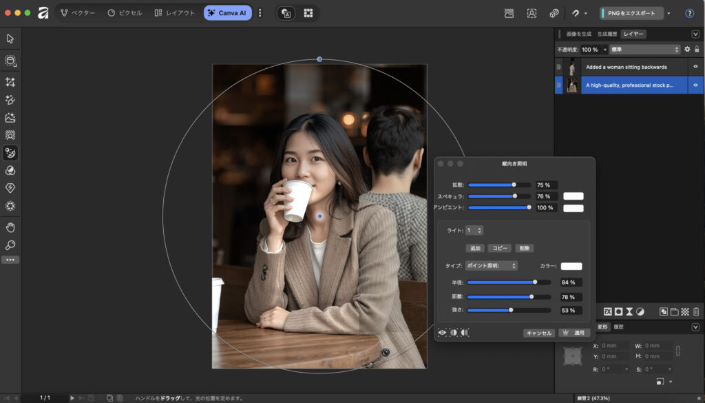 これらの機能はCanvaのプラットフォーム上で使用可能。AffinityとCanvaを組み合わせたワークフローを構築することで、より包括的なデザイン制作環境を実現できますよ。