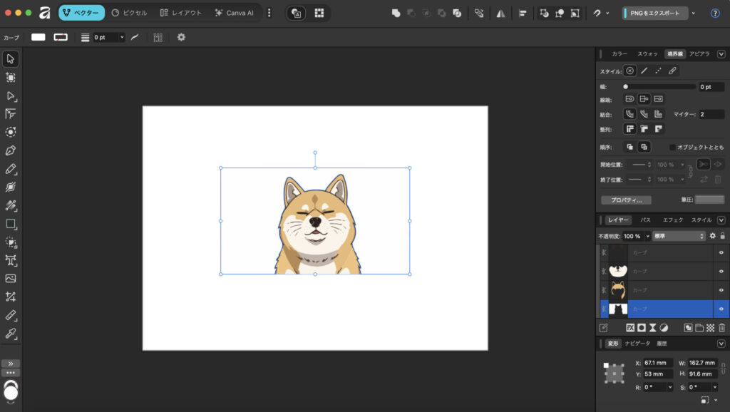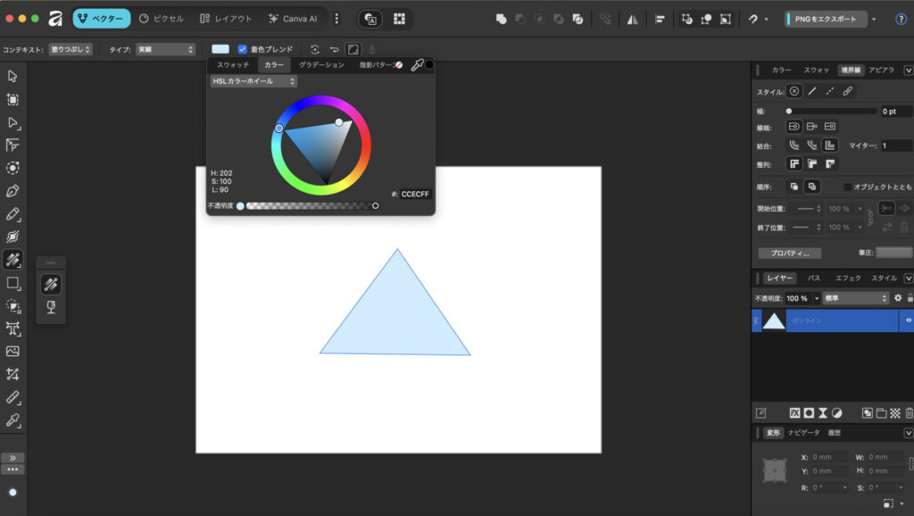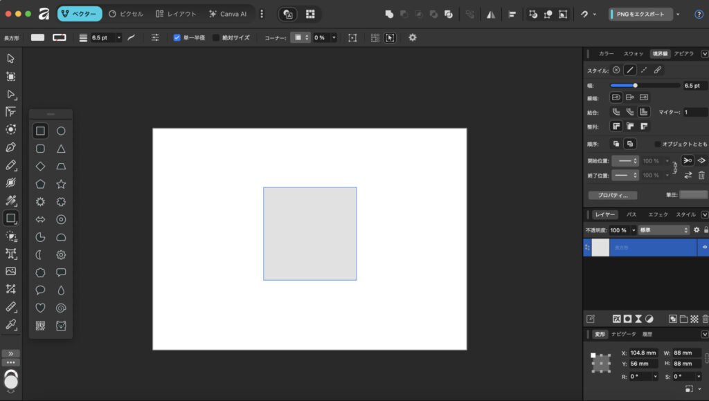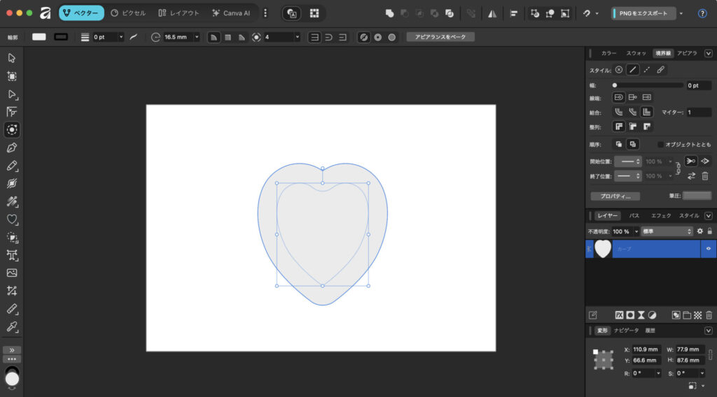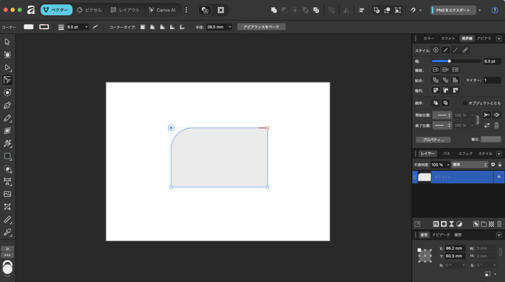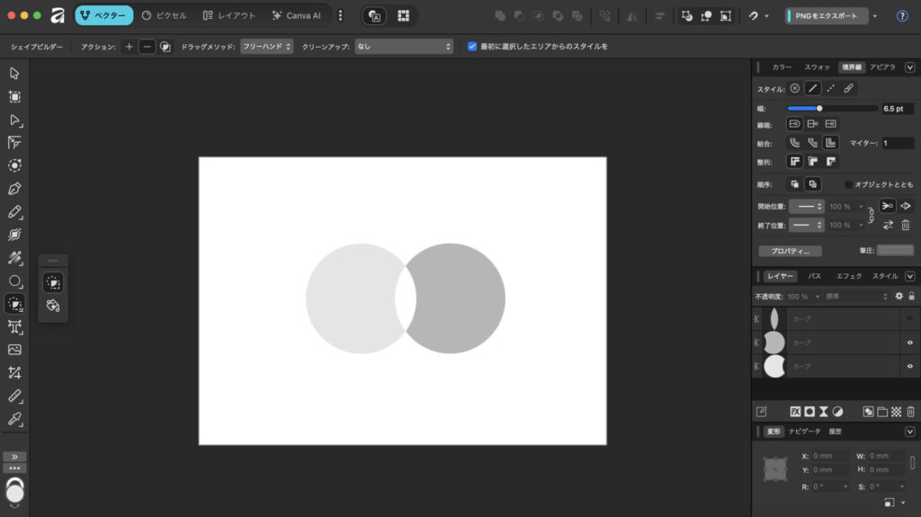 ベクターデザインの基本操作は、AffinityでもIllustratorでもほぼ同じように行えます。