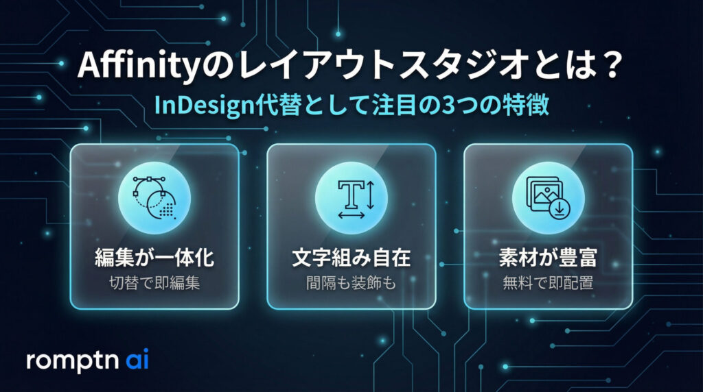 本記事では、Affinityレイアウトスタジオの基本からグリッド・マスターページ設定、実践的な冊子制作まで初心者でもすぐに使いこなせるよう徹底解説します。副業やフリーランスでデザイン制作を始めたい方、コストを抑えてプロ級のレイアウトを実現したい方は、ぜひ最後までご覧ください!