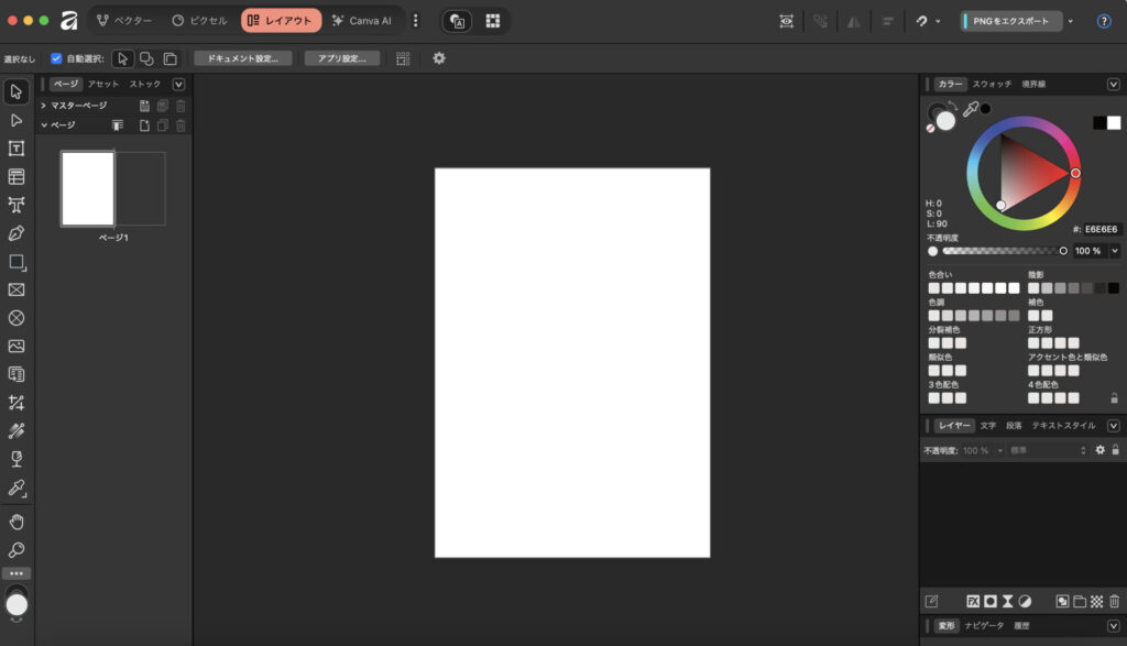 • AffinityのレイアウトスタジオはCanva統合後に生まれた新機能で、ベクター・ピクセルスタジオと完全統合されて1つのアプリ内でデザイン・写真編集・レイアウトが完結する