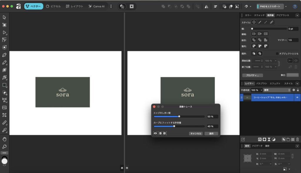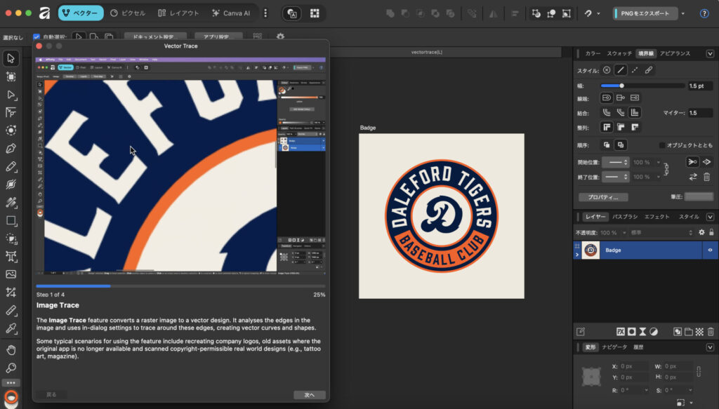 Affinityに画像トレース機能が追加され、写真やロゴを自動でベクター変換できるようになった