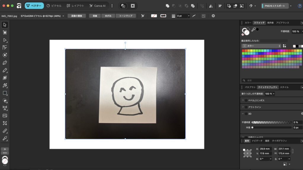取り込んだ画像はAffinityにドラッグ&ドロップでインポートできます。