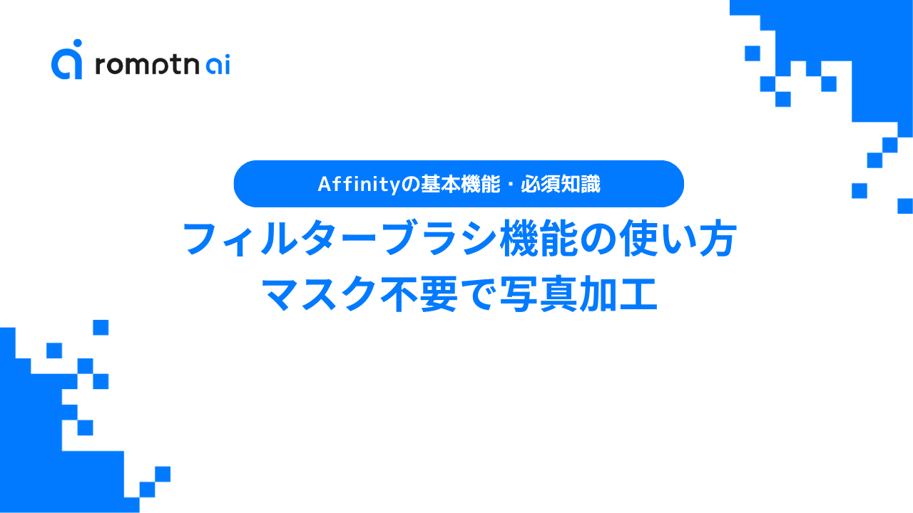 Affinityのフィルターブラシを使えば、マスク作業なしで写真の好きな部分だけに効果を適用できます。背景だけをぼかしたり、顔の一部をシャープにしたりといった加工が、ブラシで塗るだけで完成するのです。