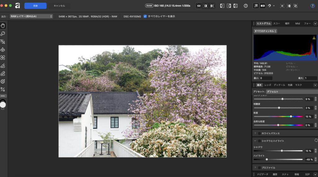 AffinityはLightroomと同等のプロ級RAW現像機能が無料で使える