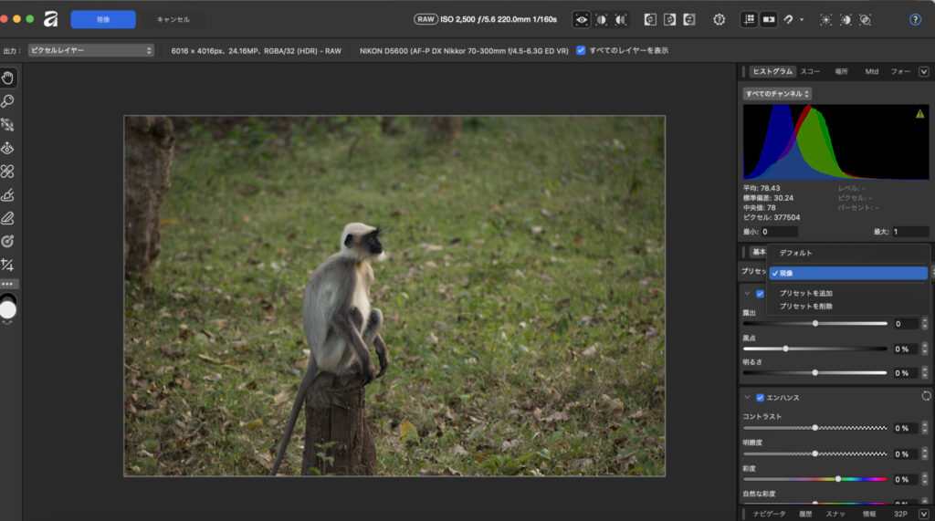 対応形式は200種類以上に及び、ほぼすべての一眼レフ・ミラーレスカメラのRAWファイルを読み込めます。互換性の高さは、Lightroomと同等レベル。最新機種のRAWファイルについては、Affinity側のアップデートで随時対応が追加される仕組みです。