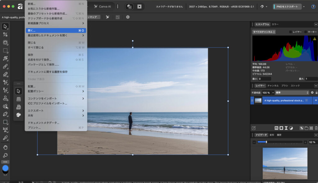この方法の利点は、Canvaの直感的なデザイン機能とAffinityの高度な写真編集を使い分けられる点です。特に、複数の写真を使用するデザインでは、写真の明るさや色味を統一することで、全体の完成度が大きく向上します。