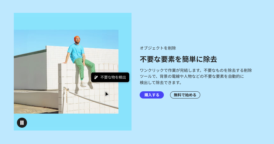 「生成塗りつぶし」「拡張と編集」「背景透過」など多くのユーザーに支持されているAI機能が含まれており、細部まで管理しながら繰り返し作業をスピードアップできます。