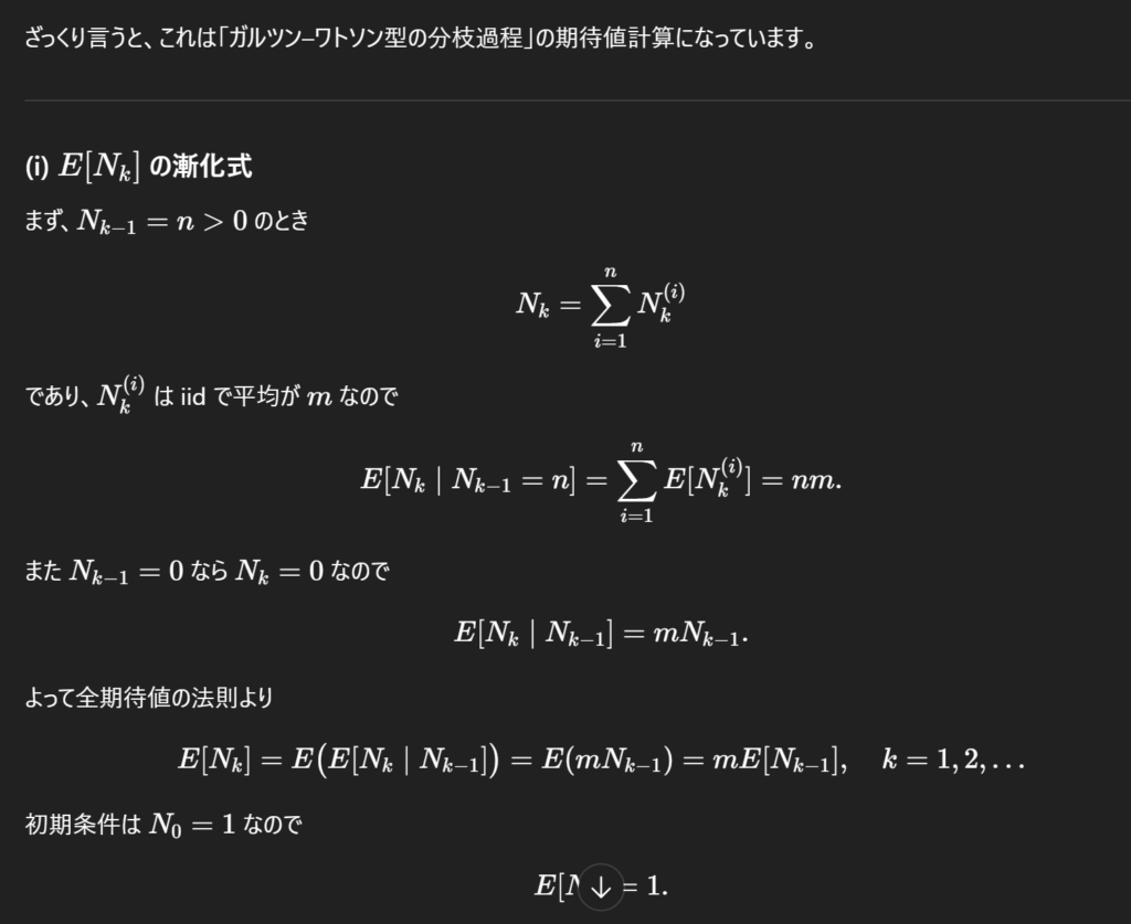 ChatGPTも一応二問とも正解でした。ただ、(i)の問題は漸化式を求めるのが目標であるにもかかわらず、漸化式を解いたものを最終的な解答としている部分が残念でした。