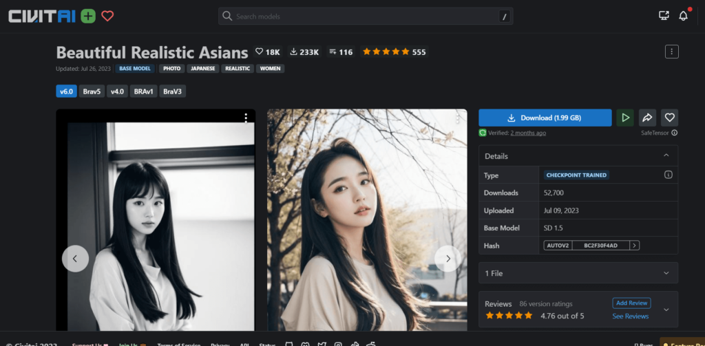 ※『civitai』でのモデルの探し方や詳しい使い方は、以下の記事を参考にしてください。