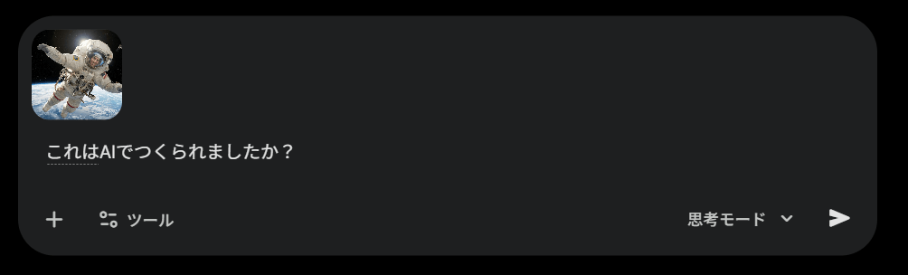 画像がAI生成かどうかの確認方法として、Geminiアプリに画像をアップロードして「これはAIで作られましたか?」と質問すると、Google AIで生成されたかどうかが即座に判定されます。以下の情報を確認できますよ