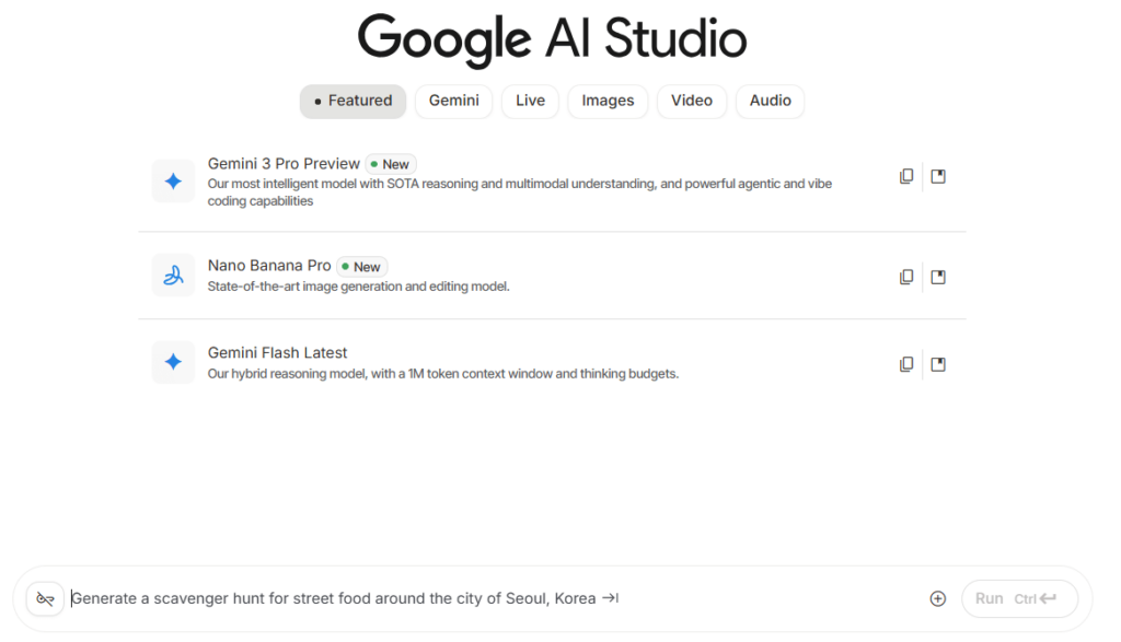 開発者やAI愛好家向けの無料開発環境が、Google AI Studioです。