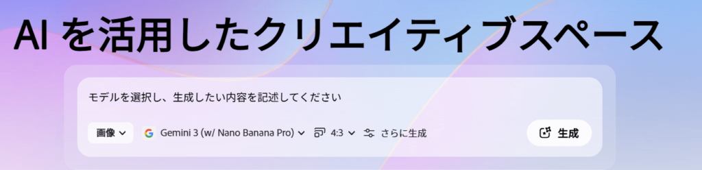 デザイナーやクリエイターにとって、慣れ親しんだAdobe製品内でNano Banana Proを使えることは大きなメリットですよね。