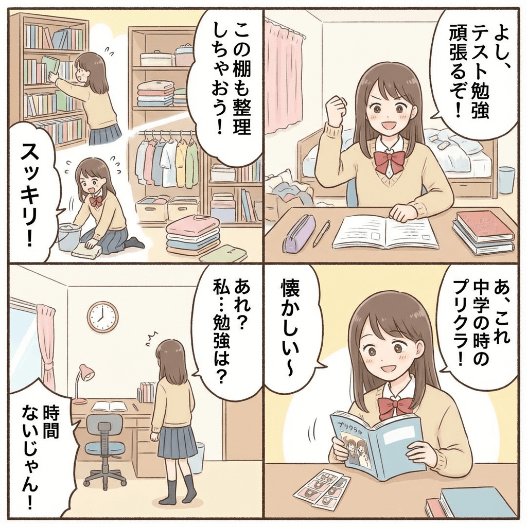 テーマ:テスト勉強をしていたはずが、いつの間にか部屋の掃除をしていた