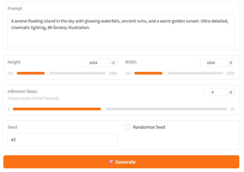 わずか8ステップ(正確には9回の推論ステップ)で高品質な画像を生成でき、他の主要モデルと同等以上の性能を発揮します。フォトリアルな人物や風景の生成が得意で、英語と中国語の文字描画にも対応しているのが特徴です。