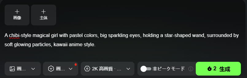 | 通常の画像生成 | 基本的な画像生成では、一定のクレジットが消費される |
