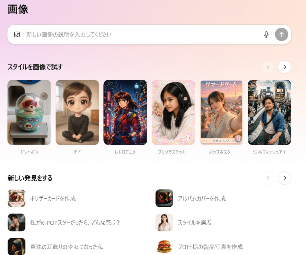 ChatGPTのサイドバーに画像生成専用のスペースが追加され、プリセットスタイルやトレンドプロンプトからインスピレーションを得ながら、直感的に画像制作ができるようになりました!